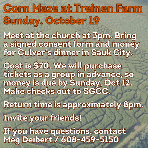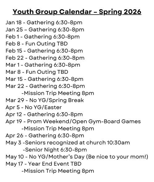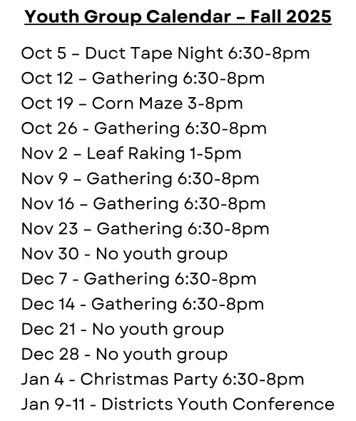 - 2nd Wednesday of the month, 6-7pm at the church, during Wacky Wednesday, October to April